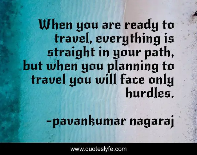This page presents the quote "When you are ready to travel, everything is straight in your path, but when you planning to travel you will face only hurdles.". Author of this quote is pavankumar nagaraj. This quote is about go, life, strong, streanth,.