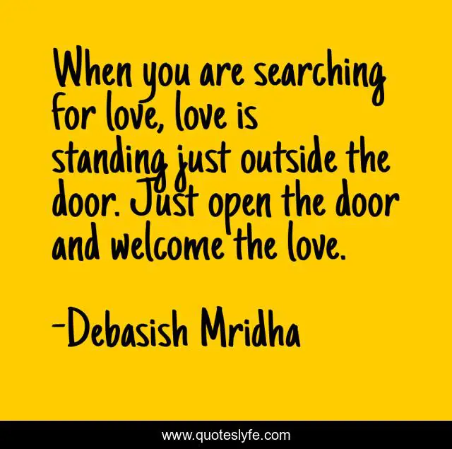 This page presents the quote "When you are searching for love, love is standing just outside the door. Just open the door and welcome the love.". Author of this quote is Debasish Mridha. This quote is about life, love, knowledge, inspirational, intelligence, philosophy, wisdom, quotes, affection,.