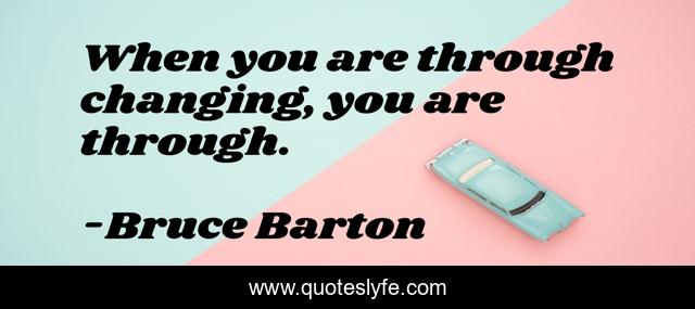 This page presents the quote "When you are through changing, you are through.". Author of this quote is Bruce Barton. This quote is about changing, through,.