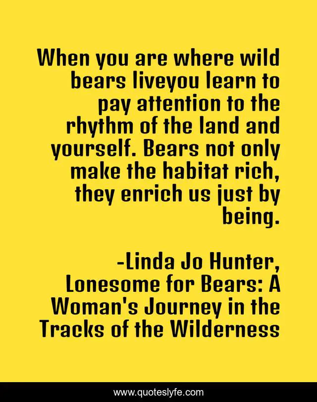 "Linda Jo Hunter, Lonesome for Bears: A Woman's Journey in the Tracks of the Wilderness Quotes." Quoteslyfe.com, 2025. Fri. 05 Dec. 2025. <https://www.quoteslyfe.com/quote/When-you-are-where-wild-bears-liveyou-121500>.