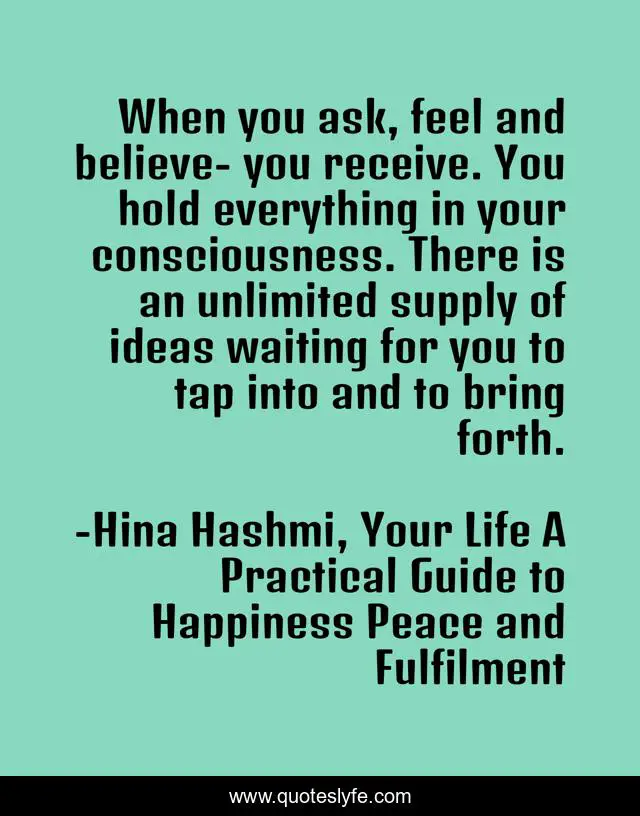"Hina Hashmi, Your Life A Practical Guide to Happiness Peace and Fulfilment Quotes." Quoteslyfe.com, 2025. Fri. 05 Dec. 2025. <https://www.quoteslyfe.com/quote/When-you-ask-feel-and-believe-you-214786>.