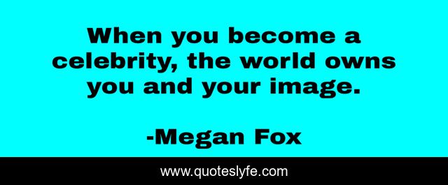 This page presents the quote "When you become a celebrity, the world owns you and your image.". Author of this quote is Megan Fox. This quote is about world, celebrity,.