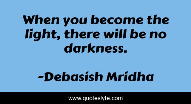 This page presents the quote "When you become the light, there will be no darkness.". Author of this quote is Debasish Mridha. This quote is about become-the-light, debasish, darkness, light, philosophy, debasish-mridha, no-darkness, mridha,.