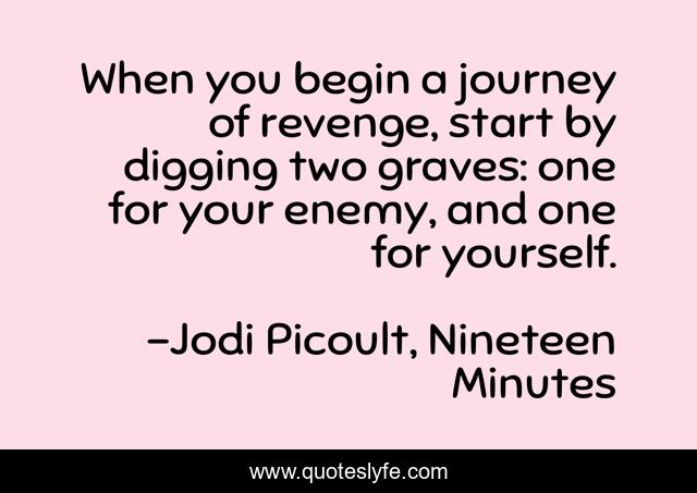 This page presents the quote "When you begin a journey of revenge, start by digging two graves: one for your enemy, and one for yourself.". Author of this quote is Jodi Picoult, Nineteen Minutes. This quote is about chinese-proverb, revenge,.