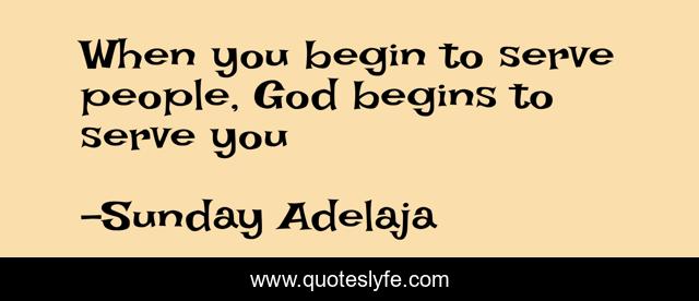 This page presents the quote "When you begin to serve people, God begins to serve you". Author of this quote is Sunday Adelaja. This quote is about kingdom, life, love, destiny, service, people, money, god, work,.
