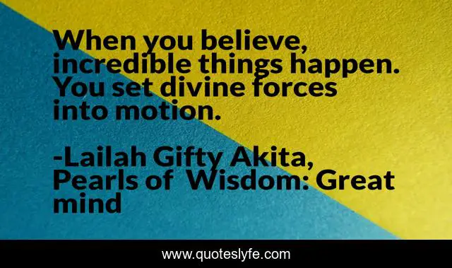"Lailah Gifty Akita, Pearls of Wisdom: Great mind Quotes." Quoteslyfe.com, 2025. Sun. 07 Dec. 2025. <https://www.quoteslyfe.com/quote/When-you-believe-incredible-things-happen-You-85289>.
