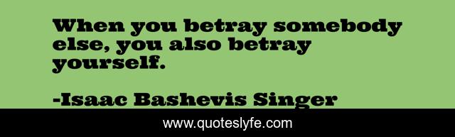 This page presents the quote "When you betray somebody else, you also betray yourself.". Author of this quote is Isaac Bashevis Singer. This quote is about somebody, yourself,.