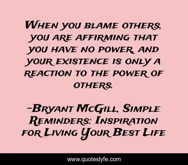 "Bryant McGill, Simple Reminders: Inspiration for Living Your Best Life Quotes." Quoteslyfe.com, 2025. Fri. 05 Dec. 2025. <https://www.quoteslyfe.com/quote/When-you-blame-others-you-are-affirming-88957>.