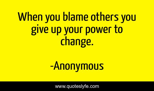This page presents the quote "When you blame others you give up your power to change.". Author of this quote is Anonymous. This quote is about self, reliance,.