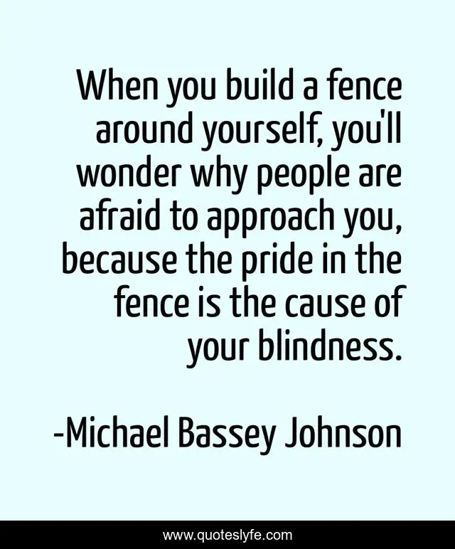 When you build a fence around yourself, you'll wonder why people are afraid to approach you, because the pride in the fence is the cause of your blindness.