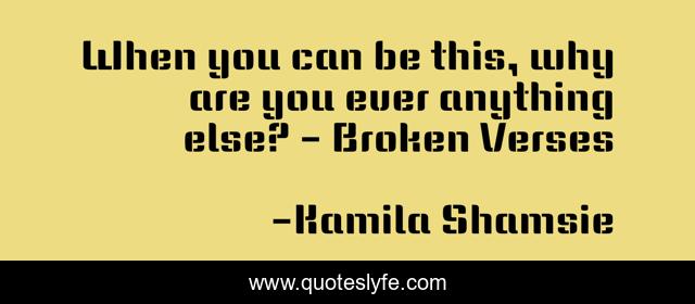 This page presents the quote "When you can be this, why are you ever anything else? - Broken Verses". Author of this quote is Kamila Shamsie. .