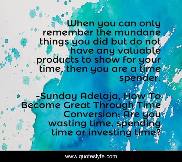 "Sunday Adelaja, How To Become Great Through Time Conversion: Are you wasting time, spending time or investing time? Quotes." Quoteslyfe.com, 2025. Mon. 08 Dec. 2025. <https://www.quoteslyfe.com/quote/When-you-can-only-remember-the-mundane-39313>.