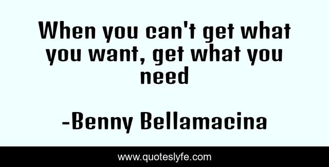 This page presents the quote "When you can't get what you want, get what you need". Author of this quote is Benny Bellamacina. This quote is about life, philosophy, wisdom,.