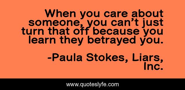 This page presents the quote "When you care about someone, you can’t just turn that off because you learn they betrayed you.". Author of this quote is Paula Stokes, Liars, Inc.. This quote is about betrayal, feelings,.