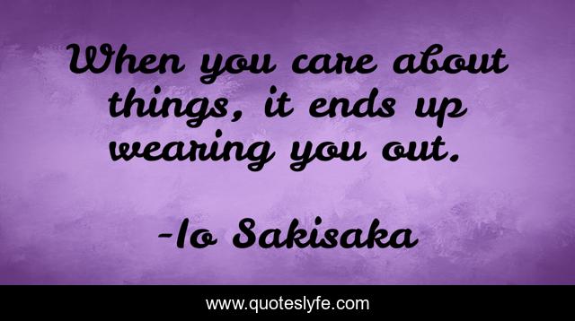 This page presents the quote "When you care about things, it ends up wearing you out.". Author of this quote is Io Sakisaka. This quote is about ends, pain, endings, things-that-matter, life, reality, sad-love, truth, sad,.