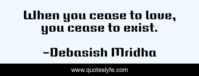This page presents the quote "When you cease to love, you cease to exist.". Author of this quote is Debasish Mridha. This quote is about cease-to-love, philosophy, debasish-mridha, cease-to-exist, importance-of-love, quotes, inspirational, enthusiasm, debasish-mridha-m-d,.