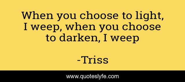 This page presents the quote "When you choose to light, I weep, when you choose to darken, I weep". Author of this quote is Triss. This quote is about death, life-and-living, weep,.