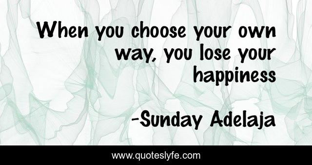 This page presents the quote "When you choose your own way, you lose your happiness". Author of this quote is Sunday Adelaja. This quote is about purpose, calling, fulfillment, way, lose, happiness, choose,.