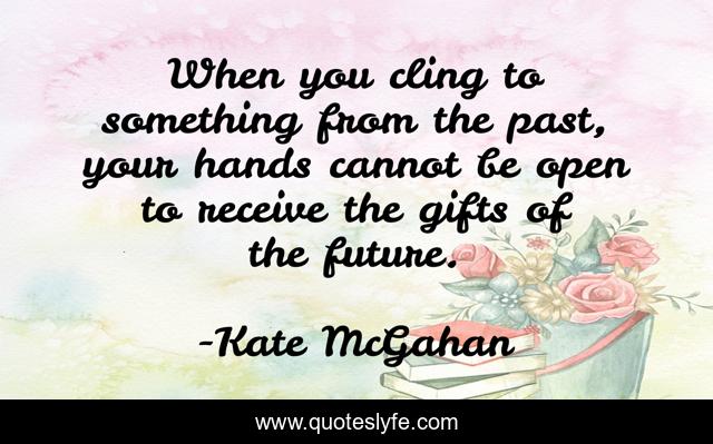 This page presents the quote "When you cling to something from the past, your hands cannot be open to receive the gifts of the future.". Author of this quote is Kate McGahan. This quote is about gifts, letting-go, past, future, cling,.