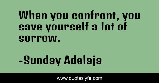 This page presents the quote "When you confront, you save yourself a lot of sorrow.". Author of this quote is Sunday Adelaja. This quote is about confront, sorrow, save, yourself,.
