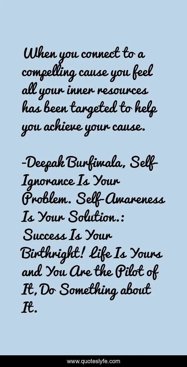 "Deepak Burfiwala, Self-Ignorance Is Your Problem. Self-Awareness Is Your Solution.: Success Is Your Birthright! Life Is Yours and You Are the Pilot of It, Do Something about It. Quotes." Quoteslyfe.com, 2025. Sat. 06 Dec. 2025. <https://www.quoteslyfe.com/quote/When-you-connect-to-a-compelling-cause-197381>.