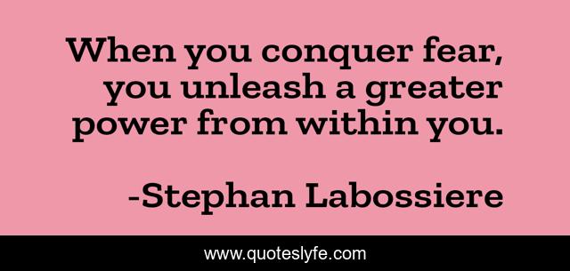 This page presents the quote "When you conquer fear, you unleash a greater power from within you.". Author of this quote is Stephan Labossiere. This quote is about confidence, love, life, affection, fear,.