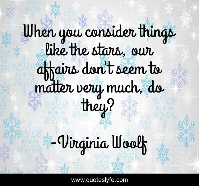 This page presents the quote "When you consider things like the stars, our affairs don't seem to matter very much, do they?". Author of this quote is Virginia Woolf. .