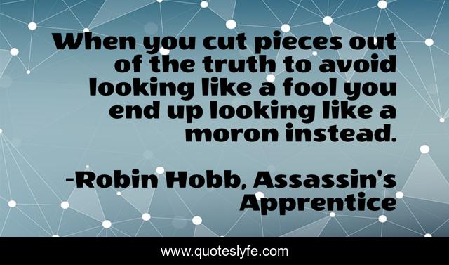 This page presents the quote "When you cut pieces out of the truth to avoid looking like a fool you end up looking like a moron instead.". Author of this quote is Robin Hobb, Assassin's Apprentice. .