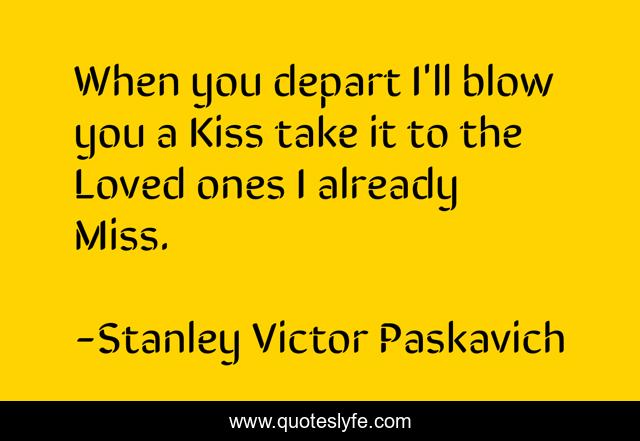 This page presents the quote "When you depart I'll blow you a Kiss take it to the Loved ones I already Miss.". Author of this quote is Stanley Victor Paskavich. .