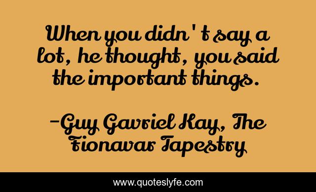 This page presents the quote "When you didn't say a lot, he thought, you said the important things.". Author of this quote is Guy Gavriel Kay, The Fionavar Tapestry. .
