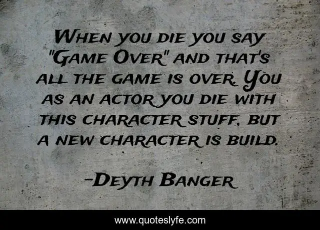 This page presents the quote "When you die you say "Game Over" and that's all the game is over. You as an actor you die with this character stuff, but a new character is build.". Author of this quote is Deyth Banger. This quote is about real, die, character, person,.