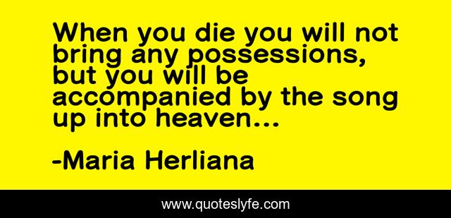 This page presents the quote "When you die you will not bring any possessions, but you will be accompanied by the song up into heaven…". Author of this quote is Maria Herliana. This quote is about music, life-and-death,.