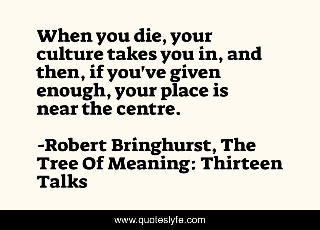 This page presents the quote "When you die, your culture takes you in, and then, if you've given enough, your place is near the centre.". Author of this quote is Robert Bringhurst, The Tree Of Meaning: Thirteen Talks. This quote is about posterity, culture,.