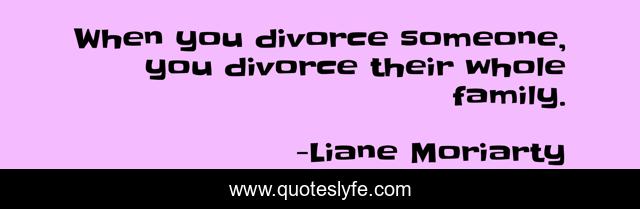 This page presents the quote "When you divorce someone, you divorce their whole family.". Author of this quote is Liane Moriarty. This quote is about divorce, family,.