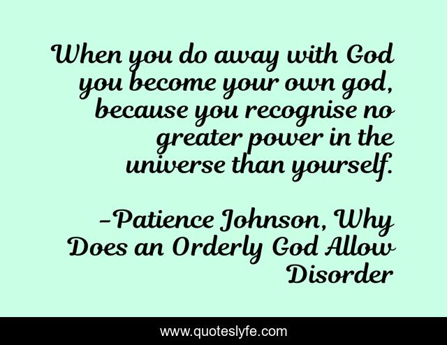 "Patience Johnson, Why Does an Orderly God Allow Disorder Quotes." Quoteslyfe.com, 2025. Mon. 08 Dec. 2025. <https://www.quoteslyfe.com/quote/When-you-do-away-with-God-you-20605>.