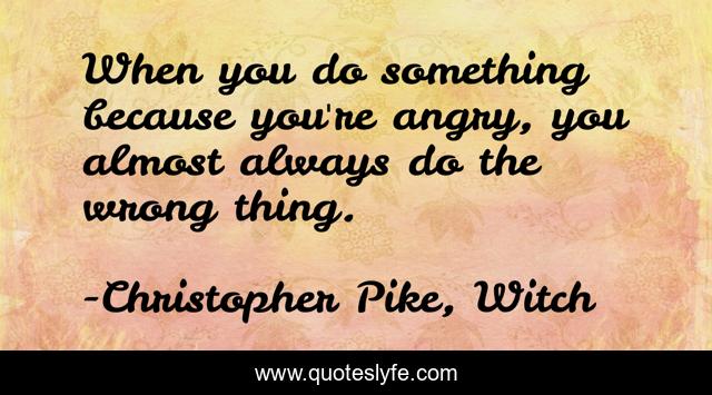 This page presents the quote "When you do something because you're angry, you almost always do the wrong thing.". Author of this quote is Christopher Pike, Witch. .