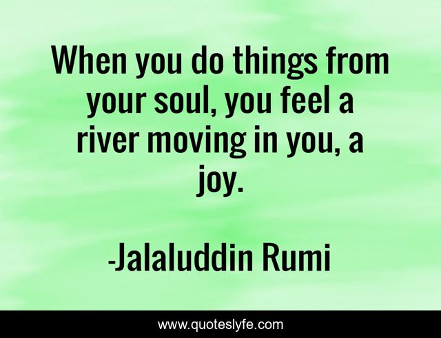 This page presents the quote "When you do things from your soul, you feel a river moving in you, a joy.". Author of this quote is Jalaluddin Rumi. .