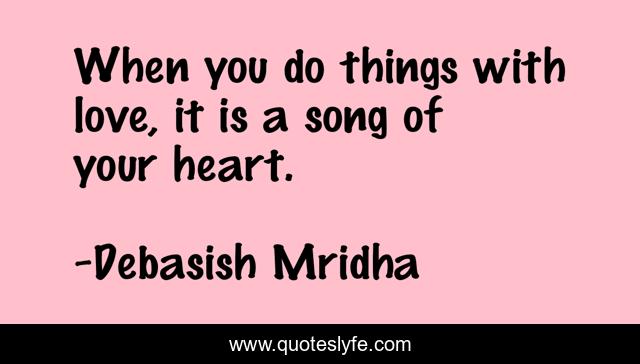 This page presents the quote "When you do things with love, it is a song of your heart.". Author of this quote is Debasish Mridha. This quote is about life, love, knowledge, inspirational, intelligence, philosophy, wisdom, quotes, affection,.