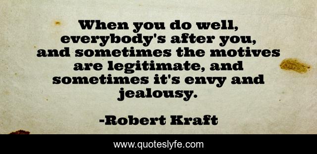 This page presents the quote "When you do well, everybody's after you, and sometimes the motives are legitimate, and sometimes it's envy and jealousy.". Author of this quote is Robert Kraft. This quote is about envy, sometimes,.