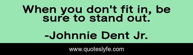 This page presents the quote "When you don't fit in, be sure to stand out.". Author of this quote is Johnnie Dent Jr.. This quote is about fitting-in, stand-out, acceptance,.