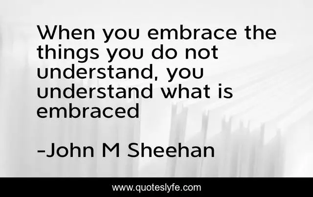 This page presents the quote "When you embrace the things you do not understand, you understand what is embraced". Author of this quote is John M Sheehan. This quote is about embrace-the-journey, darkness, light-and-darkness,.