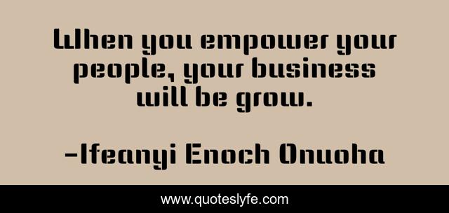 This page presents the quote "When you empower your people, your business will be grow.". Author of this quote is Ifeanyi Enoch Onuoha. This quote is about business, advice, wisdom, ifeanyi-enoch-onuoha, leadership, vision,.