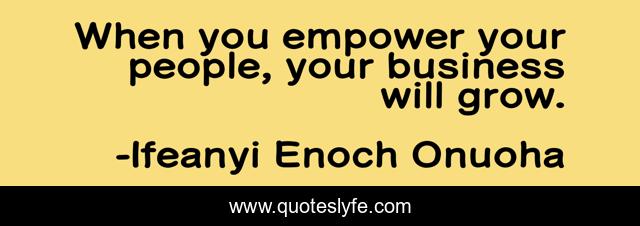 This page presents the quote "When you empower your people, your business will grow.". Author of this quote is Ifeanyi Enoch Onuoha. This quote is about advice, leadership, wisdom-of-winners, ifeanyi-enoch-onuoha, business,.