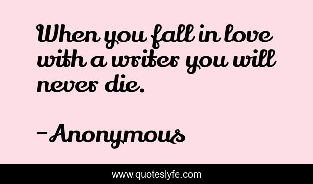 This page presents the quote "When you fall in love with a writer you will never die.". Author of this quote is Anonymous. .