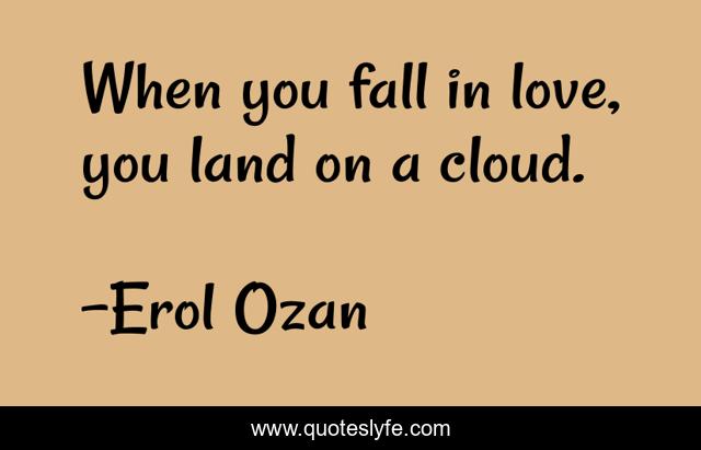 This page presents the quote "When you fall in love, you land on a cloud.". Author of this quote is Erol Ozan. This quote is about relationships, amorous, love, romantic, relationship, romanticism, feelings, romance, lovers,.