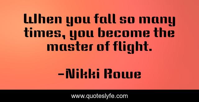 This page presents the quote "When you fall so many times, you become the master of flight.". Author of this quote is Nikki Rowe. This quote is about life, powerful, understanding, growth, truth, life-ans-living, master-life-lessons,.