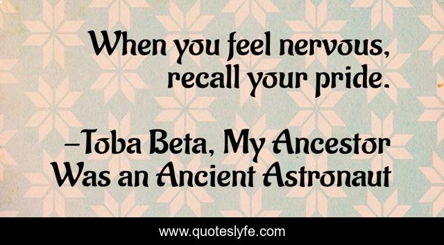 "Toba Beta, My Ancestor Was an Ancient Astronaut Quotes." Quoteslyfe.com, 2025. Tue. 09 Dec. 2025. <https://www.quoteslyfe.com/quote/When-you-feel-nervous-recall-your-pride-186275>.