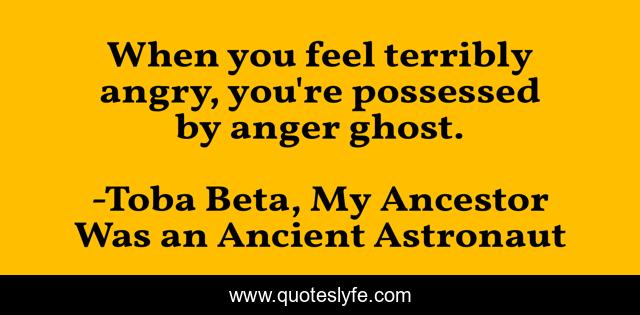 This page presents the quote "When you feel terribly angry, you're possessed by anger ghost.". Author of this quote is Toba Beta, My Ancestor Was an Ancient Astronaut. This quote is about anger, ghost, possessed,.
