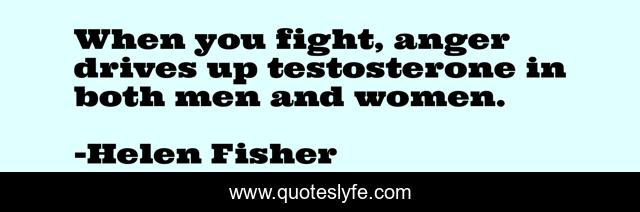 This page presents the quote "When you fight, anger drives up testosterone in both men and women.". Author of this quote is Helen Fisher. This quote is about women, men, fight,.