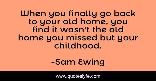 This page presents the quote "When you finally go back to your old home, you find it wasn't the old home you missed but your childhood.". Author of this quote is Sam Ewing. This quote is about childhood, find,.